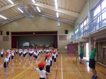 (写真は1年生がラジオ体操をしているところです)
