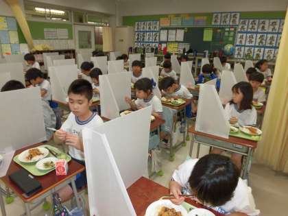 5年生は、給食を黙々と食べていました。「ごちそうさまでした。」と、言った後にはきれいに空になった食器を見せてきます。給食がおいしいからですね。