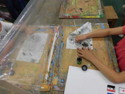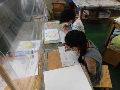 思い思いの形に削ったペンで描いた絵は楽しい雰囲気の絵が多かったです。