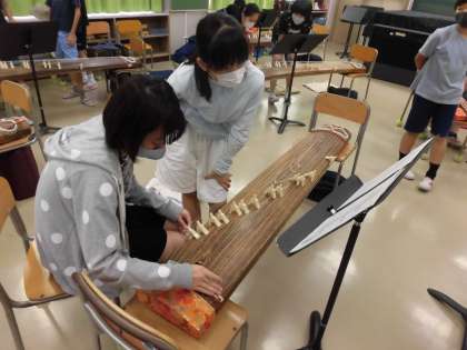 学習の最後には、交代しながら全員で伴奏に合わせて演奏し、日本の楽器の響きを味わうことができました。
