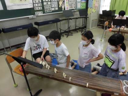 3.4校時に6年生が学級ごとにお箏(琴)を演奏しました。