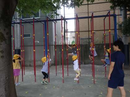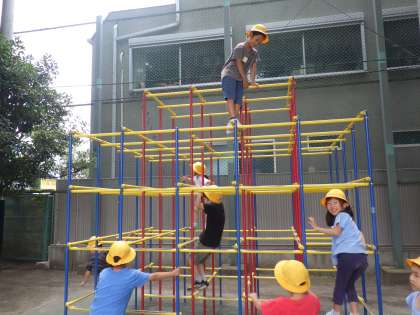 のぼり棒にすべり台、ジャングルジムでやっと遊ぶことができて、大喜びです。