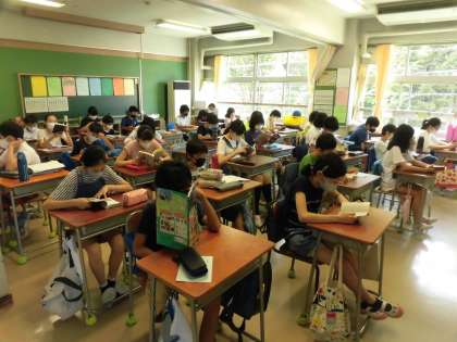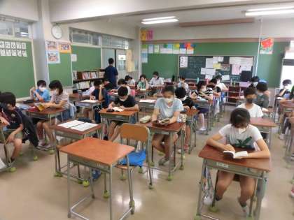 今日の朝読書の時間、子どもたちは、自分で用意した本や学級文庫の本の読書に親しんでいました。短い時間ですが、長年取り組んでいることから習慣化した読書活動となっていて、静かに読書する時間となっています。学級によっては、担任が読み聞かせを行うこともあります。(*写真は、6年1組と2組の様子です。)