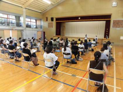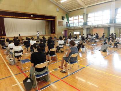 厳しい陽射しと暑さとなる中、ご出席をいただきありがとうございました。新設されたエアコン(冷房機能)と大型送風機を使用しながらの会場でしたが、各学年からの話をお聴きくださりありがとうございました。