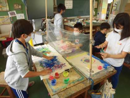 9/7 5年生 図工「ねちゃねちゃ おえかき」