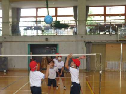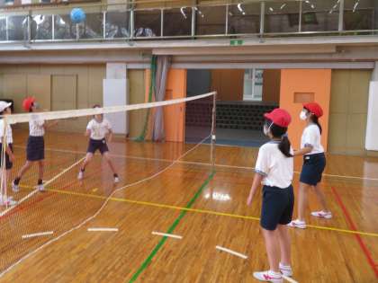 5年生は、体育でキャッチバレーボールをしました。自分やチームでめあてをたて、行ってきたキャッチバレーボールは今日が最後の学習でした。子どもたちは声を掛け合い、「ネットの近くにトスする人は動こうよ。」、「アタックする人の前にトスすると強いアタックが打てるよ。」など、アドバイスを出し合って取り組んでいました。
