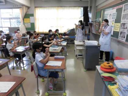 普段、何気なく洗っている手洗いの大切さや体を清潔に保つことの大切さに気付き、振り返りの感想では、これからの自分の実践や行動につなげていきたいとの感想が、たくさんワークシートに記述され、また、一人一人からの発表もありました。
