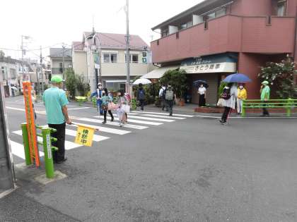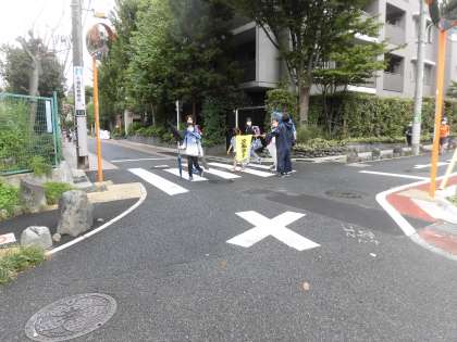 登校時には、保護者の皆様や桜丘町会の皆様が、各ポイントでの見守りと旗振りをしてくださっています。期間中、よろしくお願いいたします。