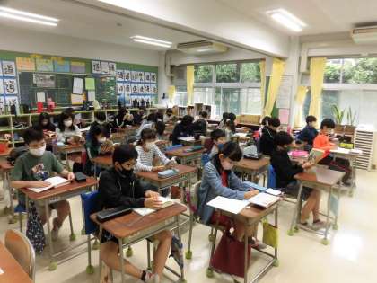 図書館が開館され、今日も4学級の図書館オリエンテーションが予定されています。新しい図書館に行くことを楽しみにしている子どもたちです。