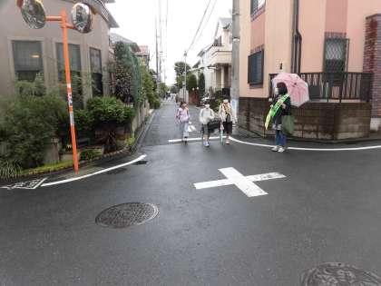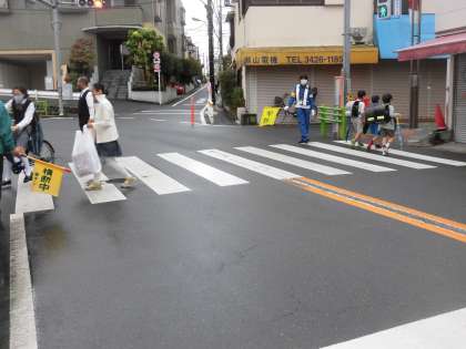 小雨模様の朝を迎え、子どもたちも傘を持って登校していました。交差点や横断歩道では、保護者の皆様、桜丘町会の皆様、歩道橋工事にかかわる誘導員の方が、横断旗を使って、子どもたちの見守りと声かけをしてくださっています。本校の職員(学校主事)もいつもの2つのポイントで登校指導をしています。