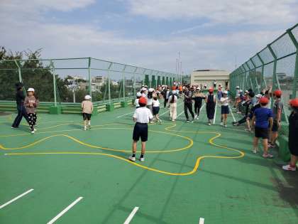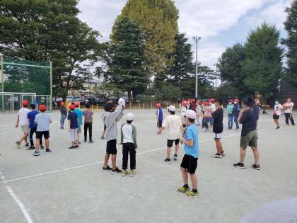 前回に続き、今日もとても過ごしやすい気候の下、元気に体を動かしました。校庭にはたくさんの足跡がついていました。