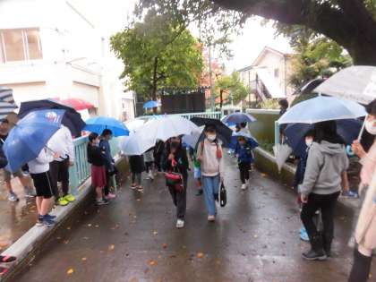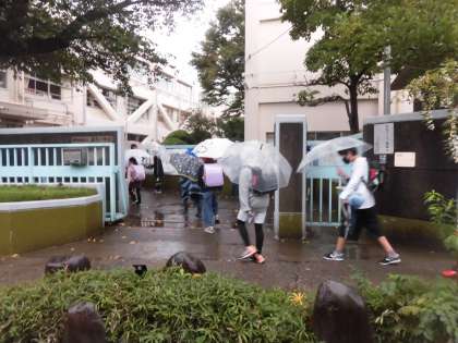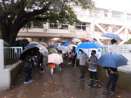 台風14号と秋雨前線の影響で、今日も雨が降る中での登校となりました。