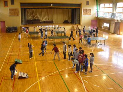 4年1組の子供たちが、キッズタイム(総合的な学習の時間)に桜寿会の方々といっしょに卓球や輪投げを楽しんだり、昔遊びをしたり、いっしょに給食を食べたりしました。お忙しいなか、桜寿会の皆様には、いろいろなことを教えていただきありがとうございました。