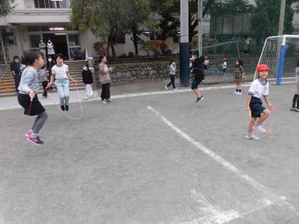 友達と一緒に縄跳びを楽しみ、跳べたことを喜ぶ子どもたちの笑顔が、とてもすてきでした。