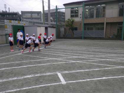 今年度の運動会、1年生の短距離走(40m)は校庭の北側レーンで行います。