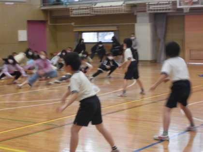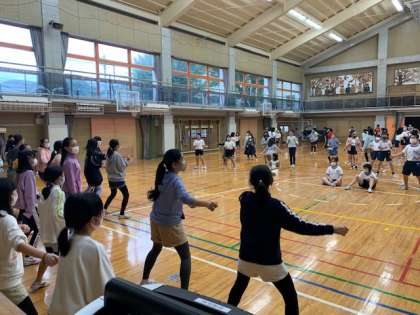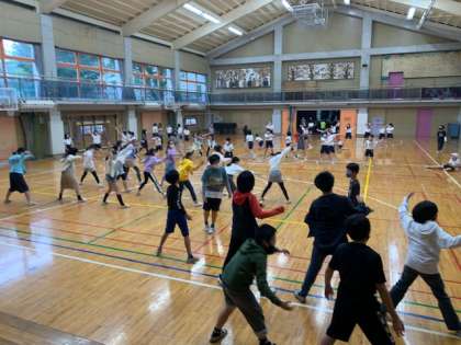 最初は戸惑っていた6年生も、はずかしがっていた4年生も、みんな一緒になって楽しく踊っていました。