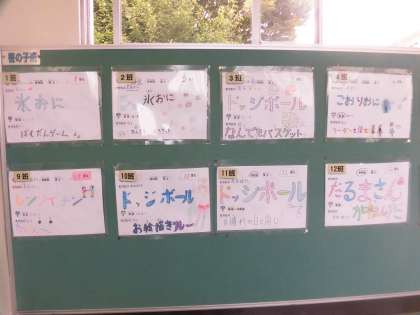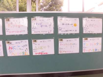 2階渡り廊下掲示コーナーには「ポスター」が掲示されています。楽しい遊びの計画が紹介されています。