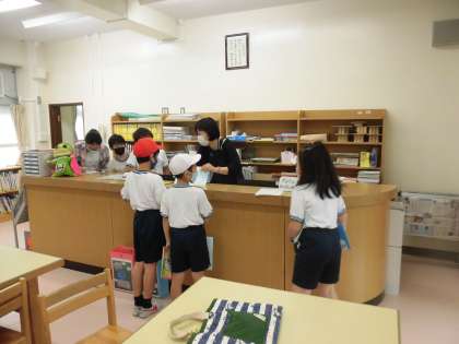 早速、今日の中休みには、3年生と5年生の利用があり、司書さんと一緒に図書委員会のみなさんが、貸し借りやカードへのチェックを行っていました。