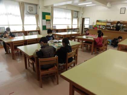 図書館の開館時間は、9時から12時までです。本の返却や貸出はもちろん、本を読んだり調べものをしたり、また、自分の学習などでも利用することができます。図書館の司書さんが、いろいろと相談にも乗ってくれます。