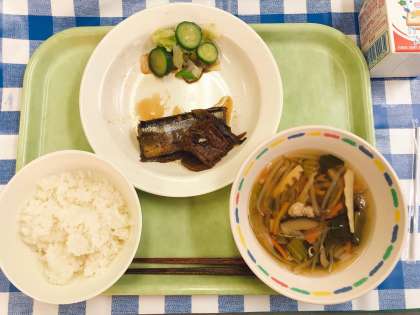 読書週間7日目は、「めぐろのさんま」という本を紹介します。これは落語で話されているお話です。このお話しにちなんで、東京都目黒区では、毎年めぐろのさんま祭りが開催されています。給食では、9月にさんまを塩焼きにしたので、今回はしょうが煮にしました。朝から調理員さんがじっくり煮てくれたので、味が染みて、やわらかくておいしいですよ。