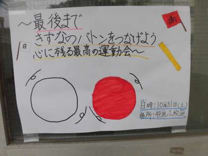 登校する子どもたちの目にも入り、運動会が間近に迫ってきていることを演出しています。