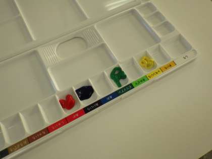 パレットに上手に絵の具を出して、筆で色をぬることができました。