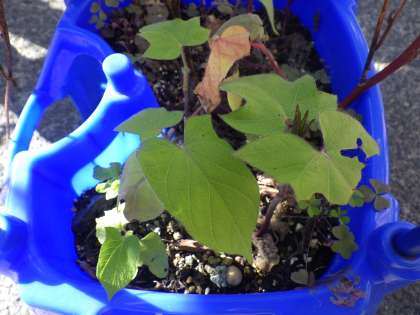 こぼれた種から双葉が出ていましたが、この寒さだとなかなか生長しないようです。