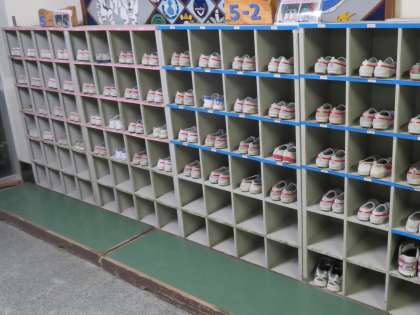 今日の子どもたちが帰った後の5年生の昇降口をふと見てみると、上履きがきれいにならんだ下駄箱が目に入ってきました。すてきな下駄箱の様子が見れてうれしい気持ちになりました。