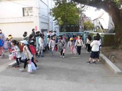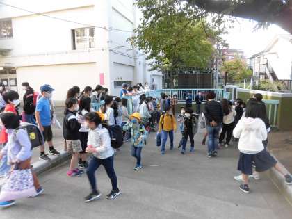 普段より少し早く登校した4年生が、正門で朝のあいさつを積極的に行い、登校して来るみなさんに声をかけていました。互いに気持ちのよいが交わされています。