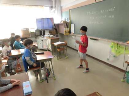 総合的な学習の時間「世界に広げよう!ともだちのWA!」の学習で、国調べをしました。アメリカ、ニュージーランド、韓国の3か国の中から調べました。盛んなスポーツを調べたいな、有名な観光地はどこかな、世界遺産には、何があるのかな、どんな食べ物があるのかななど、自分が知りたいことや関心があることを調べ発表しました。初めて知ったことや日本と似ていること、違っていることなど気が付いたことを発表していました。