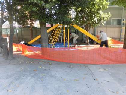 校庭の東側にある、低学年の子どもたちに人気の滑り台。