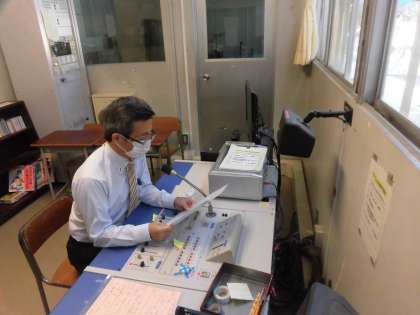 全校朝会を校内放送を使って行いました。
