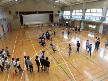 久しぶりの曇り空となりましたが、中休みには、全校で「長縄跳び」を楽しみました。校庭・体育館・屋上のそれぞれの割り当ての場所で、長縄跳びをみんなで楽しく取り組みました。低学年の回し手として運動委員のみなさんが、タイミングよく跳べるように、一生懸命縄を回している姿が印象的でした。