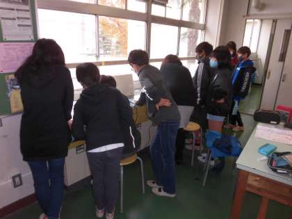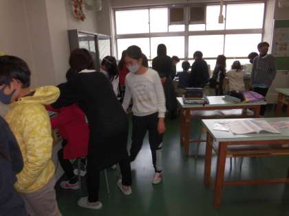 今日から家庭科で、ミシン縫いが始まりました。「ミシンは機械なので、説明をしっかり聞いて取り組みましょう。」と安全に関する注意もありました。一人ずつ、慎重に針を刺し、押さえをおろし、フットコントローラーを踏み込んで、、、動いたっ!!全員で直線縫いや直角に曲がった線の縫い方を練習しました。ミシンボランティアに参加して下さった保護者の方々のお手伝いで、たくさん練習できました。ありがとうございました。