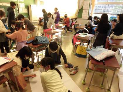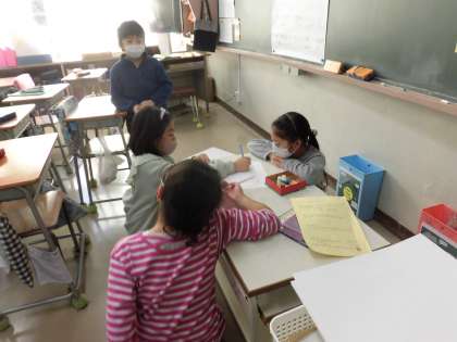 各班の班長さんが、どんな準備が必要か担当の先生と相談し、計画的にすすめています。今日はその6年生の指示を聞いて、掲示物やお店に必要な物の作成に取り組みました。