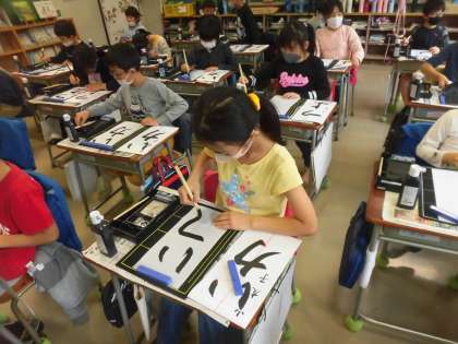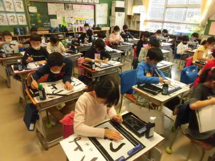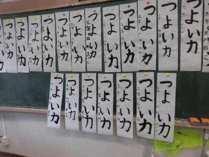3年生の書写は、「毛筆」です。用具の置き方や使い方が上手になりました。そして、速く準備ができるようになりました。今日は、書き初めの文字「つよい力」を練習しました。みんな真剣に、全集中で取り組んでいました。