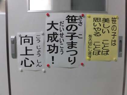 校長からは、先週のあいさつ週間を振り返って、3年生が活躍したことや全校で心を通わせるすてきなあいさつが活発に行われた成果を伝えました。次に今週のキーワードとして「笹の子まつり 大成功!」について話しました。最上級生の6年生が中心となって活動をリードして、みんなで力を合わせてつくり上げた笹の子まつりは大成功!。お店当番での輝きとスタンプカードを持ってお店を巡るお客さんとしての笑顔がいっぱいで、全力で楽しむことができた成果を伝えました。今後の笹の子班活動につなげていってほしいと願っています。