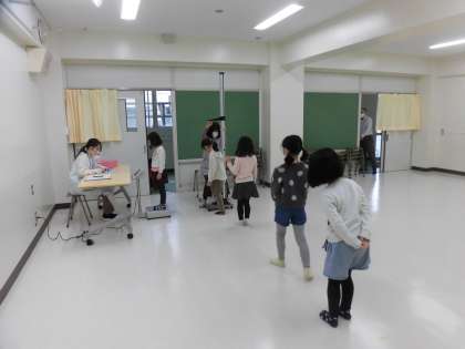 3時間目の1年生の計測では、小学校に入って3回目ともなり、計測方法の説明を受けスムーズに進んでいました。この1年間の成長には目覚ましいものがあり、たくましくなっています。