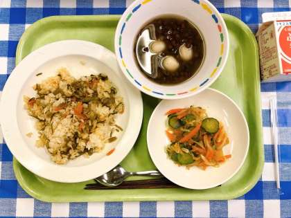 今日は朝からコトコトと小豆を煮て、温かいおしるこをつくりました。1年間健康でいられるよう、願いながら食べましょう。
