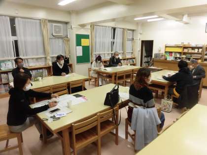 続いて、委員の皆様と先日実施した5・6年生対象の「キャリア教室」についての振り返りを行いました。ゲストティーチャーの方々と子どもたちの交流を通して、実りある機会になったことが話題になりました。また、委員の皆様から、教育活動や子どもたちの様子について感想や意見が出され、今後へ向けての情報や課題を共有し合いました。