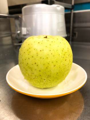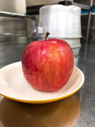 給食時間中は、りんごを味わい、片方ずつ食べている子や、