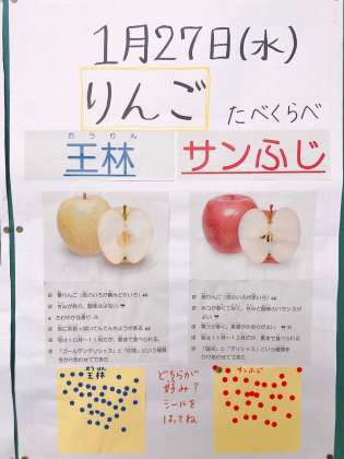 全国学校給食週間3日目は、りんごの食べ比べでした。