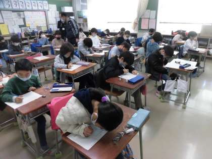 (身の回りにある電気を通す物と通さない物を調べ、予想したことがどうだったか考察し、今日の学習をまとめていました。)