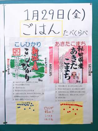 全国学校給食週間最終日は、ごはんの食べ比べでした。