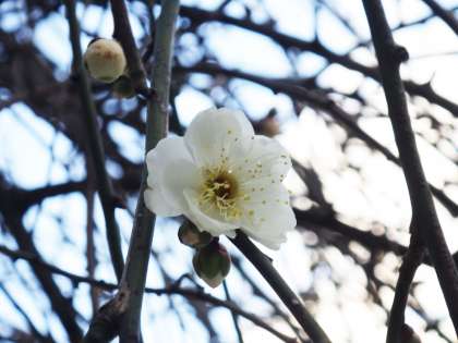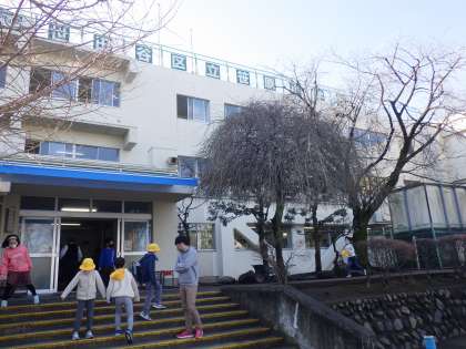立春の今日、笹原小学校のしだれ梅も咲き始めました。
