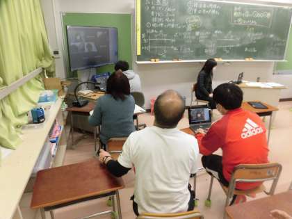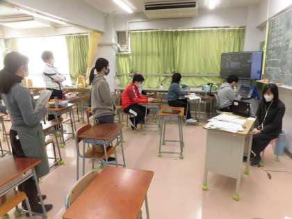 子どもたちが下校した後の時間(15時15分〜16時30分)を使って、教員が分担して毎日、接続確認への対応をしています。学校では、算数学習室から行っています。