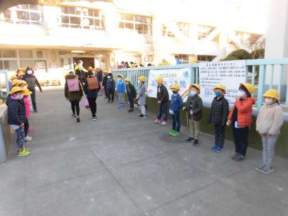 あいさつ週間、2日目の朝。正門では、あいさつキッズを務める1年2組のみなさんがいつもより少し早く登校し、気持ちのよい朝のあいさつ「おはようございます!」を会釈を交えながら行っていました。1年生の声かけに応えるように、上級生も会釈をしながらあいさつをし、元気よく登校していました。