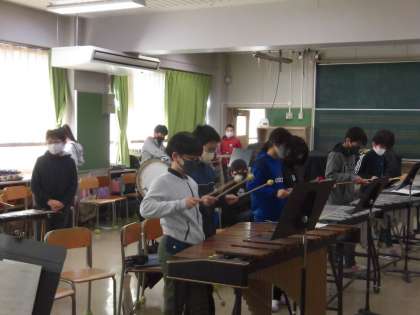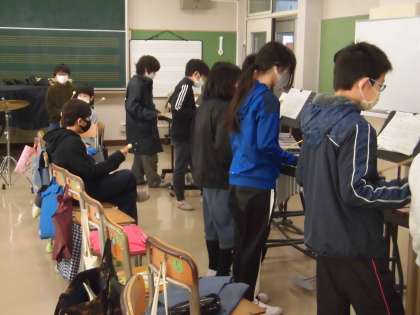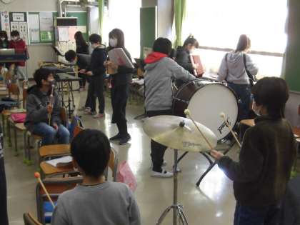 5年生は今、「威風堂々」の合奏を練習しています。この曲を録音したものが、卒業式のとき、6年生の入場に使われる予定です。在校生として全員が式には参加できませんが、合奏でお祝いの気持ちを伝えられたらと思います。みんなで合わせて、曲を作り上げる様子がすてきでした。