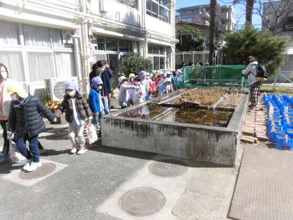 ちょうど中休みから3時間目の時間になり、上級生から声がかかったり、校庭での体育の学習を見たりすることもでき、とても嬉しそうでした。