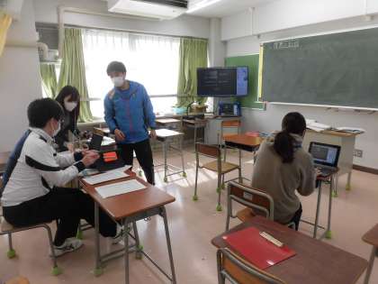 学校からは算数学習室を拠点にして、ICT推進委員会の担当教員が交代で接続テストの応答に対応しています。